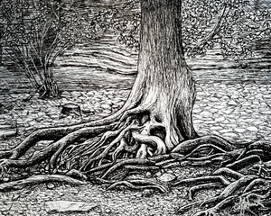 Grasping at the Roots | 7x10 Original Ink Drawing on Paper (R...