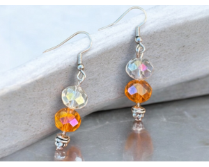 Blue bead dangle earrings with a metal tassel.  fishhook ear wires. This piece is handmade and very pretty.