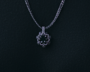Handwoven with lavender and black glass beads, the geometric petal pendant strikes a balance between gentle color and modern design. Its subtle shimmer and timeless palette make it a perfect accent piece — versatile enough for workdays, evenings, or weekend wear.