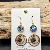 These elegant handcrafted earrings feature layered Capiz shell with a bronze heart at their center, creating a delicate yet earthy aesthetic. Accented with rich 6mm Kyanite beads, these earrings exude a sense of depth and natural beauty. The gold-filled wire adds warmth and durability, complementing the organic textures of the shell and stone.