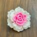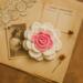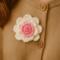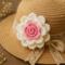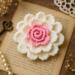 The design features a pink inner rose with elegant white outer petals, forming a delicate floral motif that can be used in a wide variety of creative projects. Clear written instructions, step-by-step photos, and video tutorial access help guide you through each stage—from building the petal strip to shaping and sewing the final rose.
