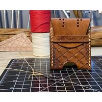 Hand tooled, dyed, and stitched. Made of vegetable tanned leather.