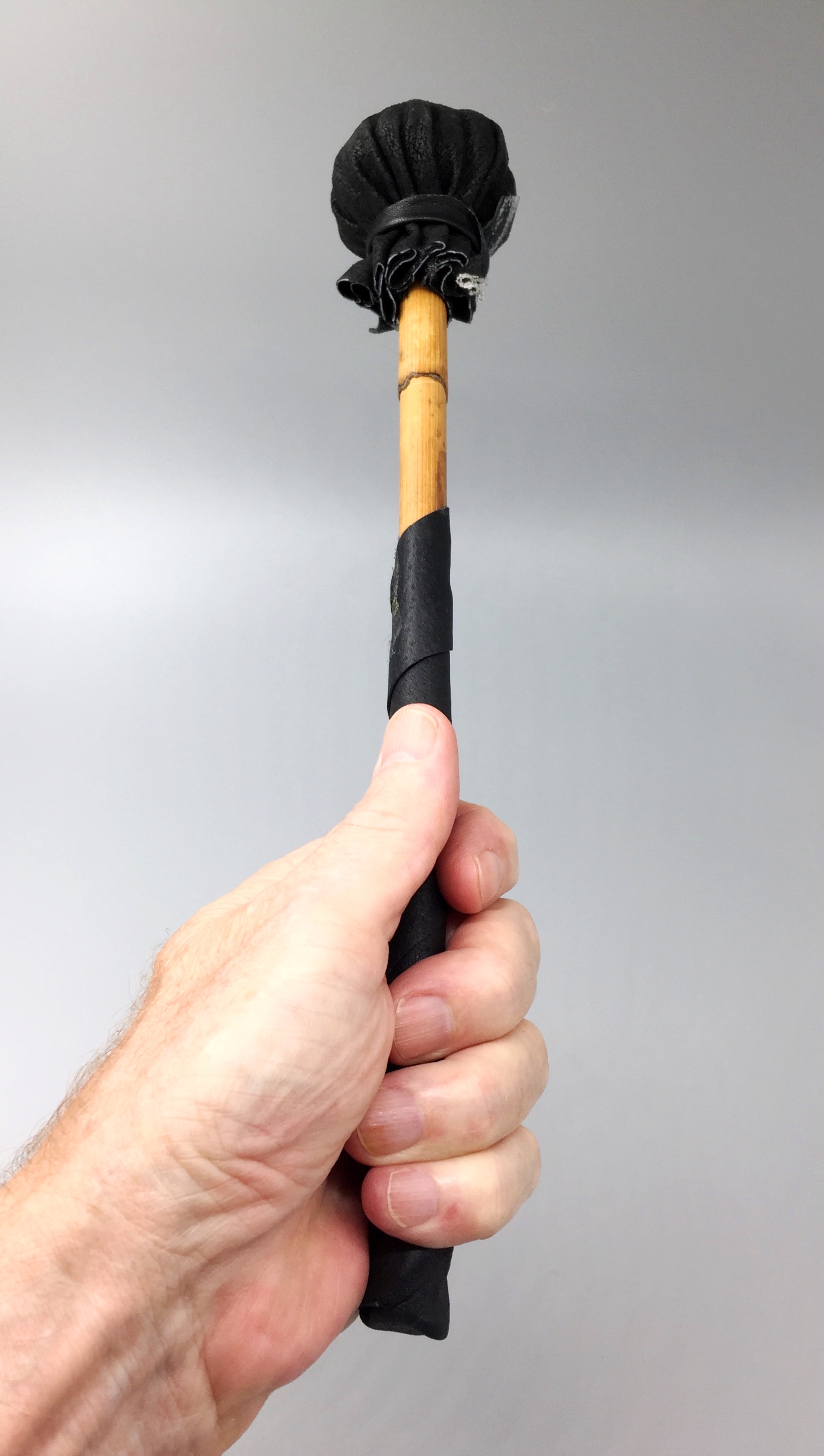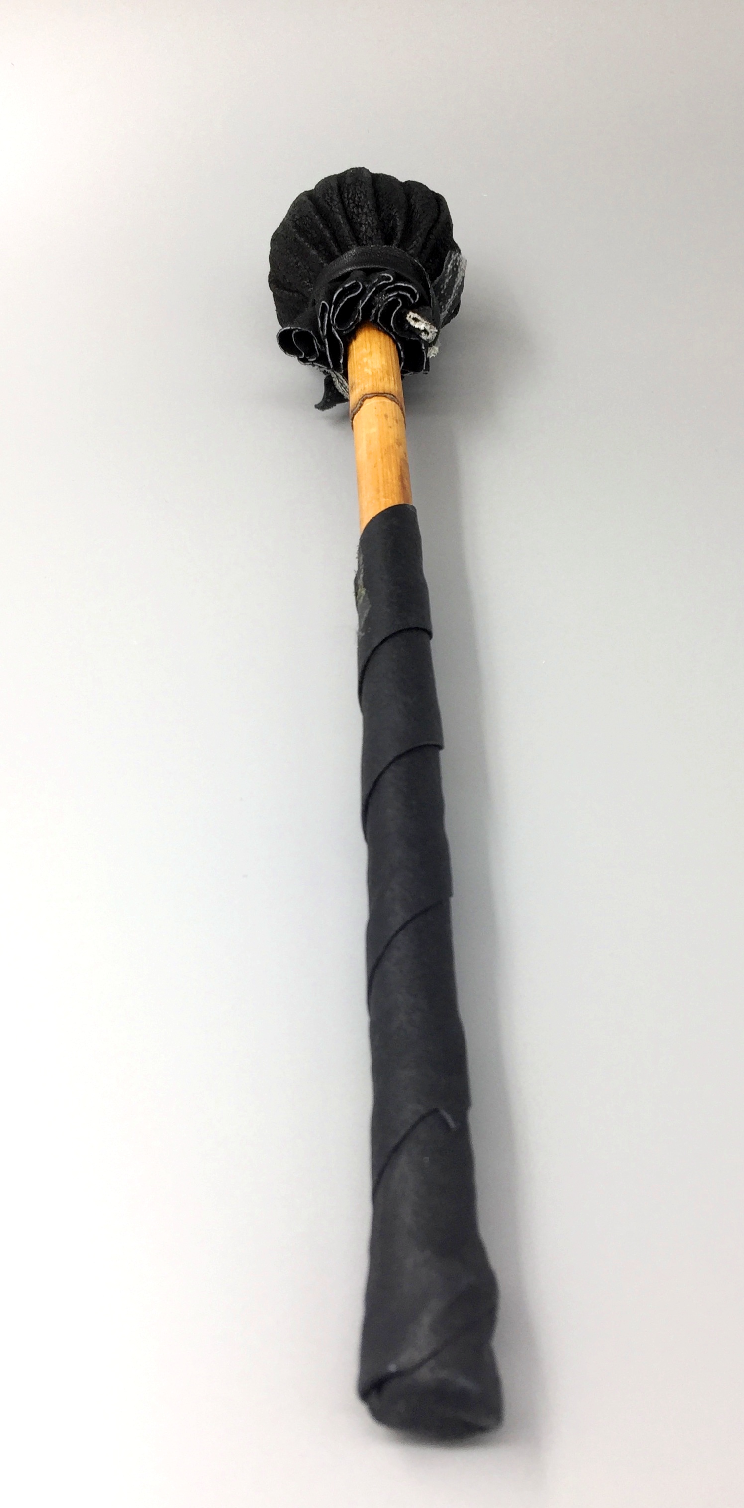 Made from Bamboo fully wrapped with Cotton rope and black Leather head and hand grip.