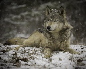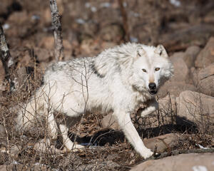 Grey Timber Wolf Guarding Den - Canis Lupus