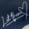 The tee is created using heat transfer vinyl and is heat pressed into the shirt.
