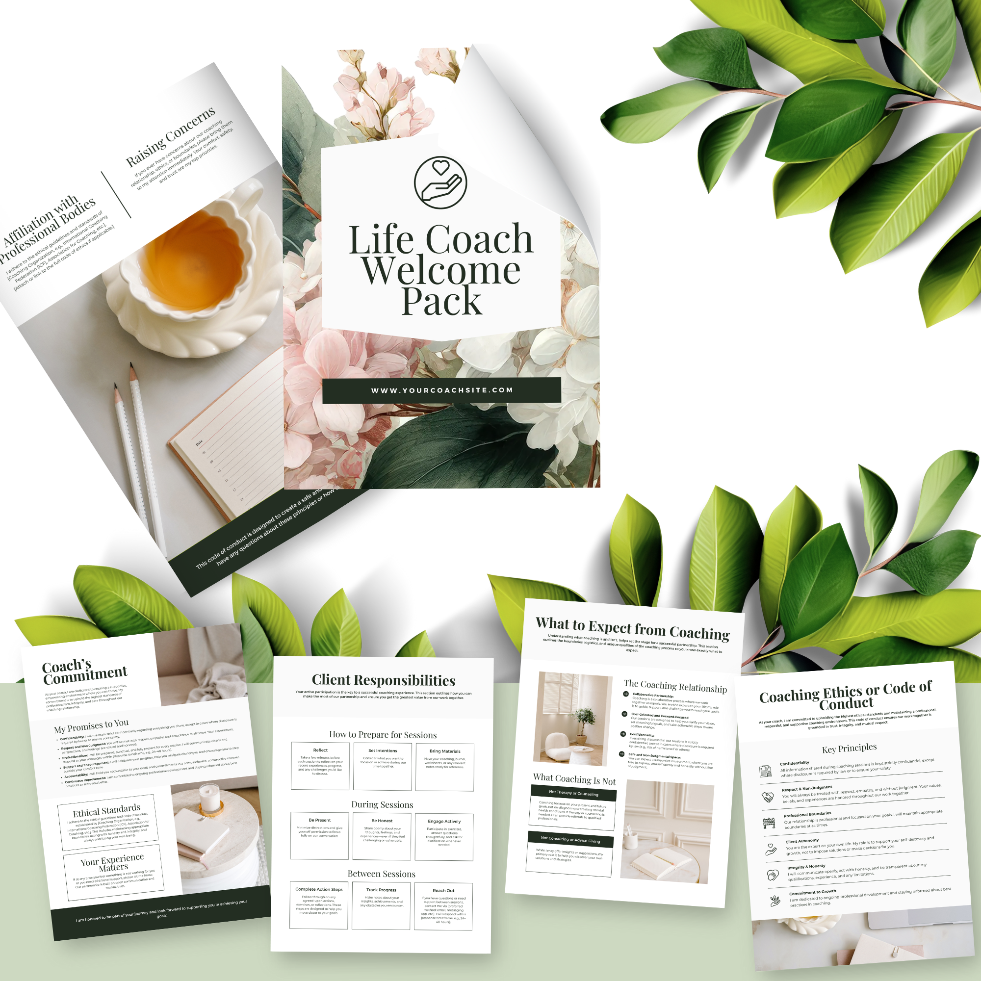 Welcome your clients with confidence and clarity using this comprehensive Life Coach Welcome Packet Canva Template! Designed for life coaches and wellness coaches, this coaching PDF contains everything you need to kick off a powerful coaching relationship and impress your clients right from the start.