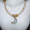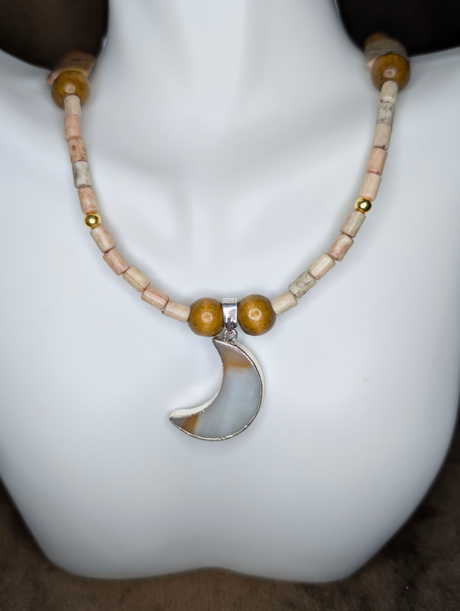 A Crescent Moon Necklace, featuring a stunning stone pendant that captures the essence of celestial beauty. This elegant piece combines the mystical allure of the crescent moon with the unique charm of a natural stone, making it a perfect addition to any outfit. Add a touch of a boho look to your everyday , this necklace is designed to inspire and enchant. Embrace the magic and make a statement with this timeless piece.