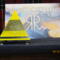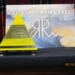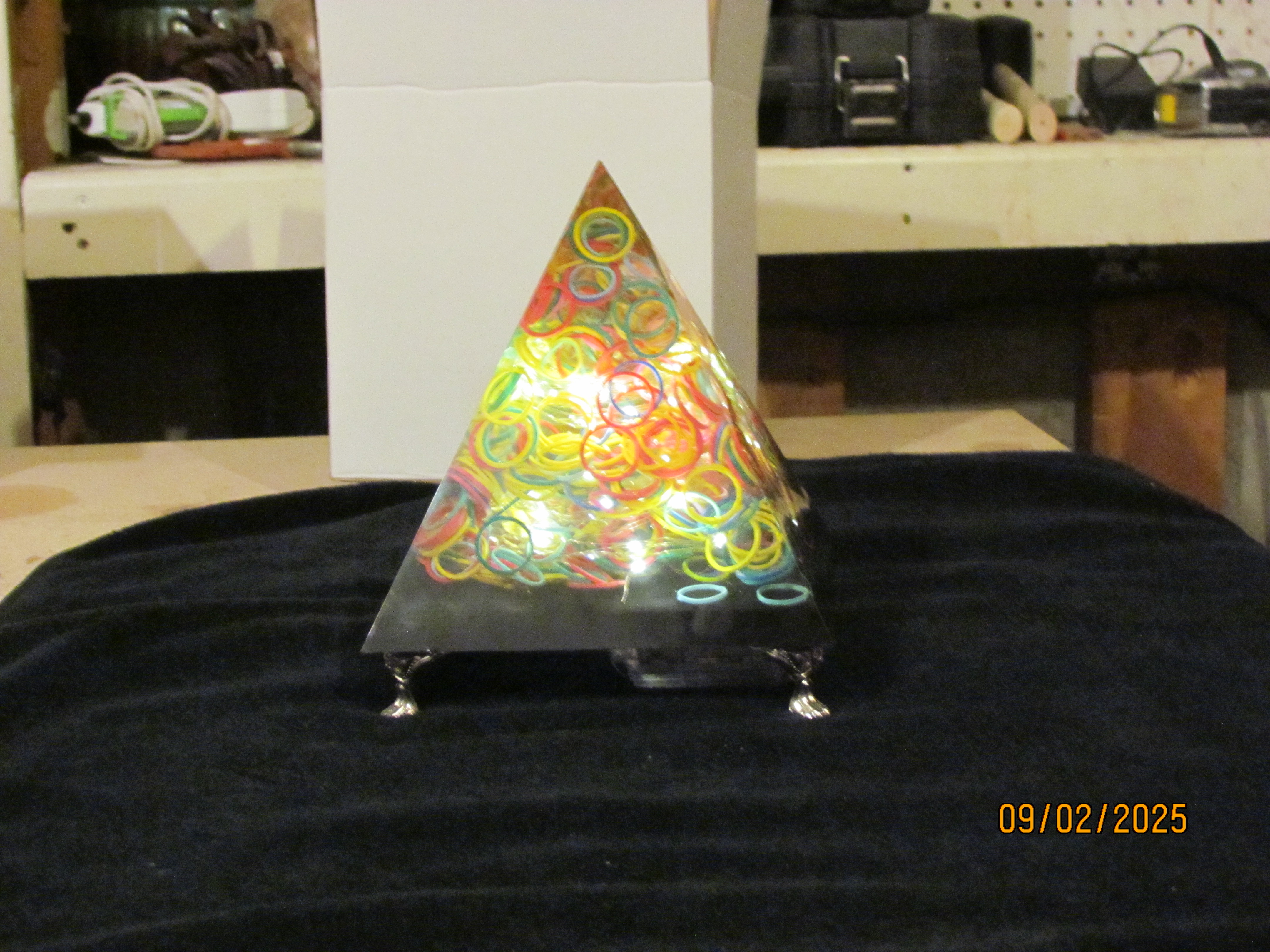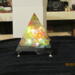 pyramid has a yellow top and yellow and black base. has colored lights inside. battery operated.