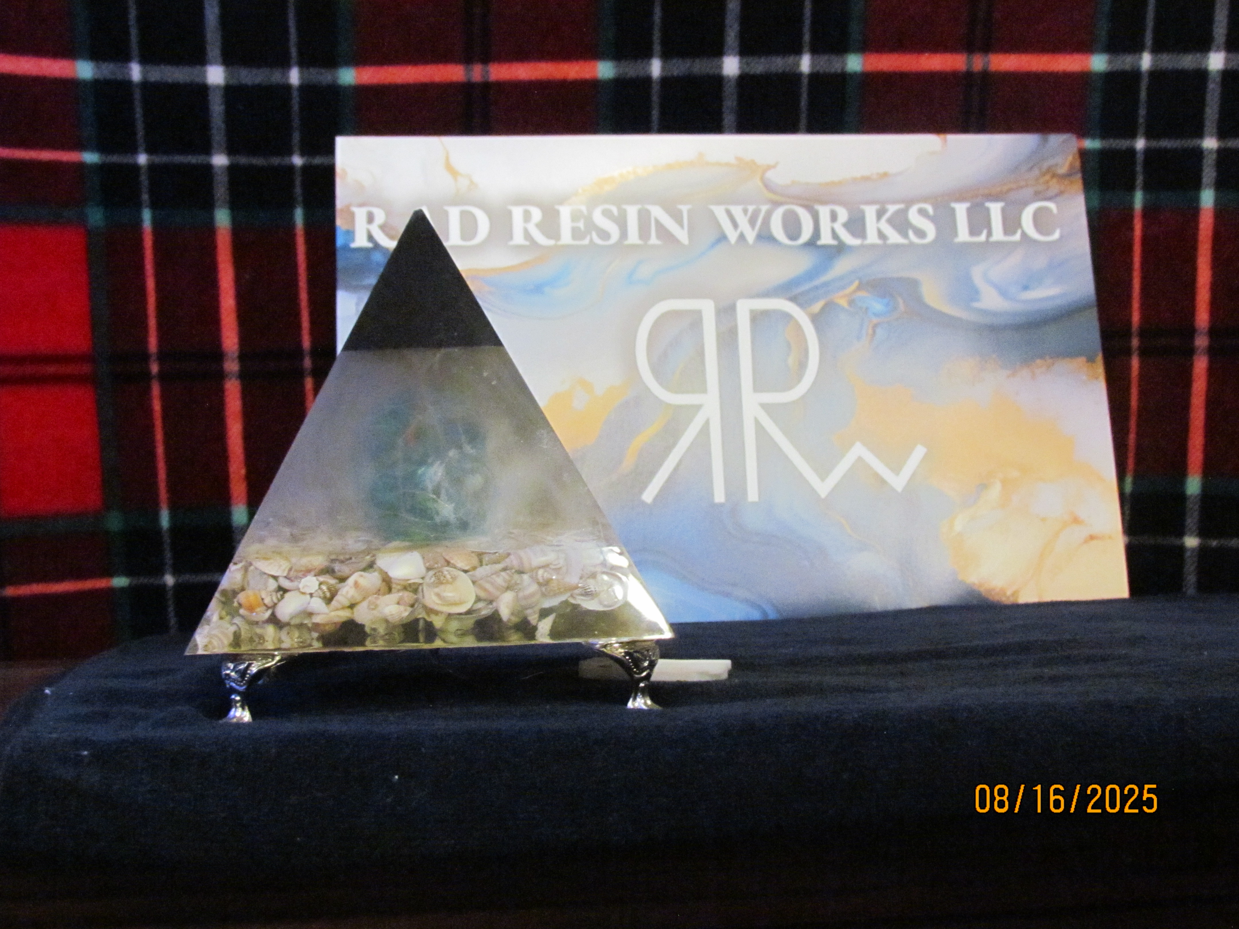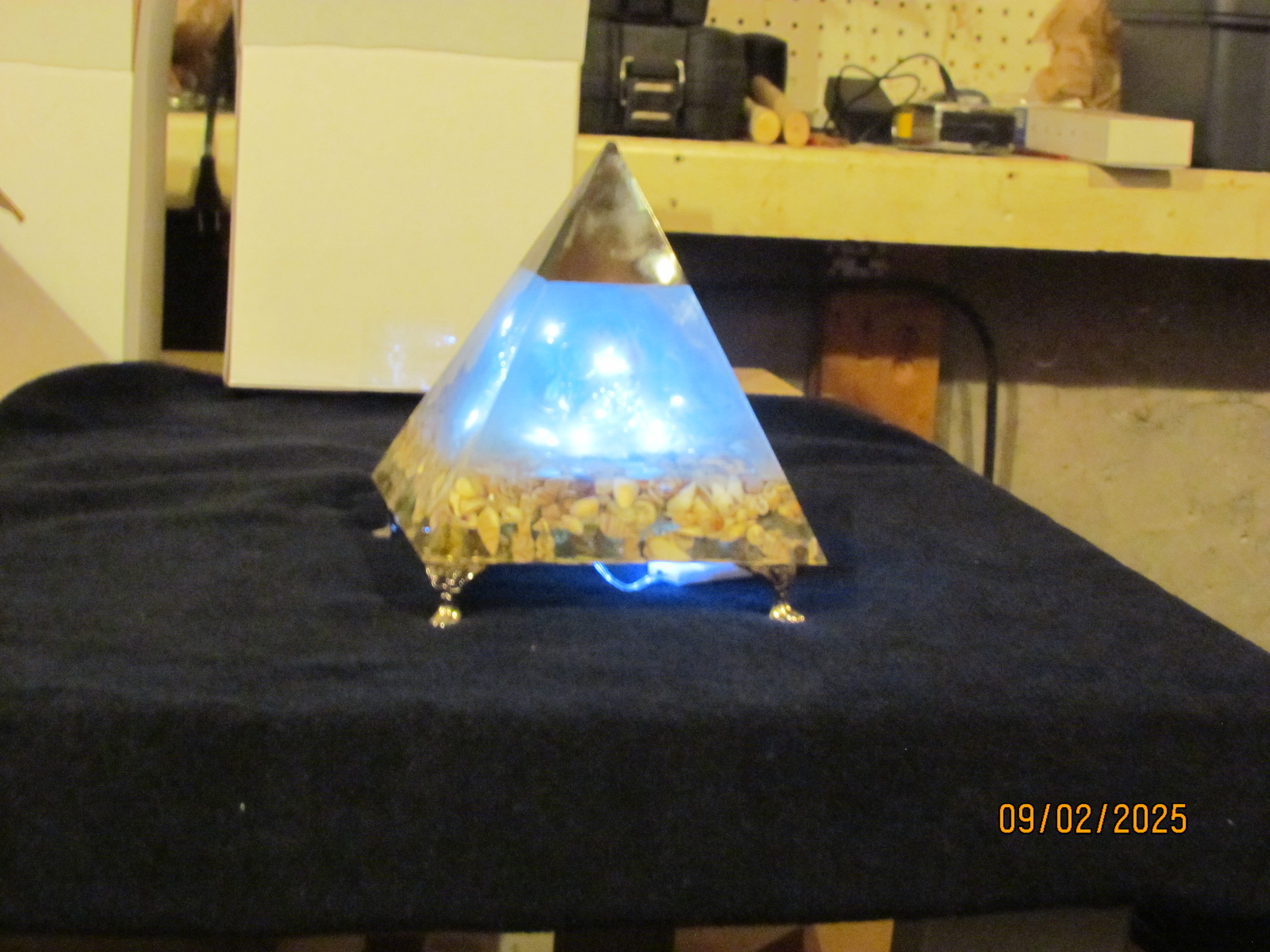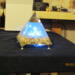 pyramid has a black top with a large lighted skull inside. battery operated. great gift idea!