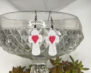 Freestanding lace is made from a machine embroidered design, usually comprised of lace fill stitches and satin stitch outlines that hold the lace together and finish the edges so the finished piece can stand alone. I take the time to pick out complimentary colors and set up the machine. After stitching I take time to trim and make the earring look great. Then I add hypoallergenic findings to each earring to complete the set.