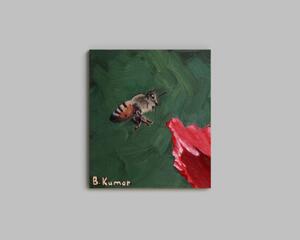 Honeybee and Poppy Flower Original Artwork / Honeybee Wall Ar...
