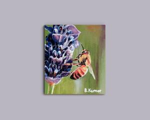 Honeybee on Lavender Mini Original Painting / Purple Flower W...