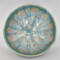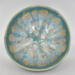 This bowl begins with a slab of white clay, hand-built onto a round form before a foot ring is added. After the first firing, a base layer of pastel blue-green glaze is applied inside and out. The bowl then receives an additional reactive glaze that lightens the color and creates subtle variations where the layers meet. The glaze moves and pools during firing, forming soft, petal-like shapes that seem to bloom across the surface. Each piece emerges from the kiln with its own distinct rhythm of color and pattern, a quiet record of how heat and materials interact in ways that can’t be repeated exactly.