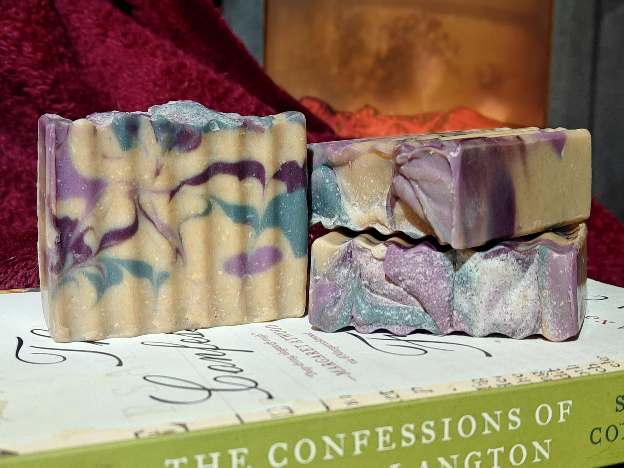 Our soap is made with a traditional "cold process" using coconut oil for lather, olive oil for moisture, sweet almond oil for vitamin E, castor oil for its anti-inflammatory properties, and sheep milk for the benefits listed above.