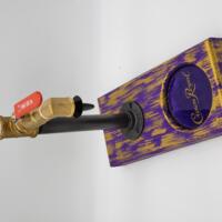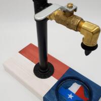 Hand carved and painted custom with metal tap. Resin cup holder area.