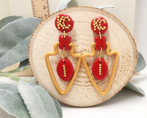 Game Day Statement Dangle Earrings - Red & Gold Arrowhead Cla...
