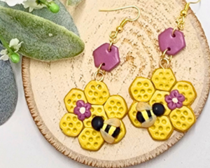 Handmade Honeycomb & Bee Earrings – Polymer Clay Dangle Earri...