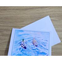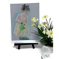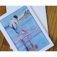 5 x 7 blank greeting card of the original colored pencil and pastel work, "To Fetch A Pail of Water." This little girl is trying to fill her bucket with water to play in the sand.