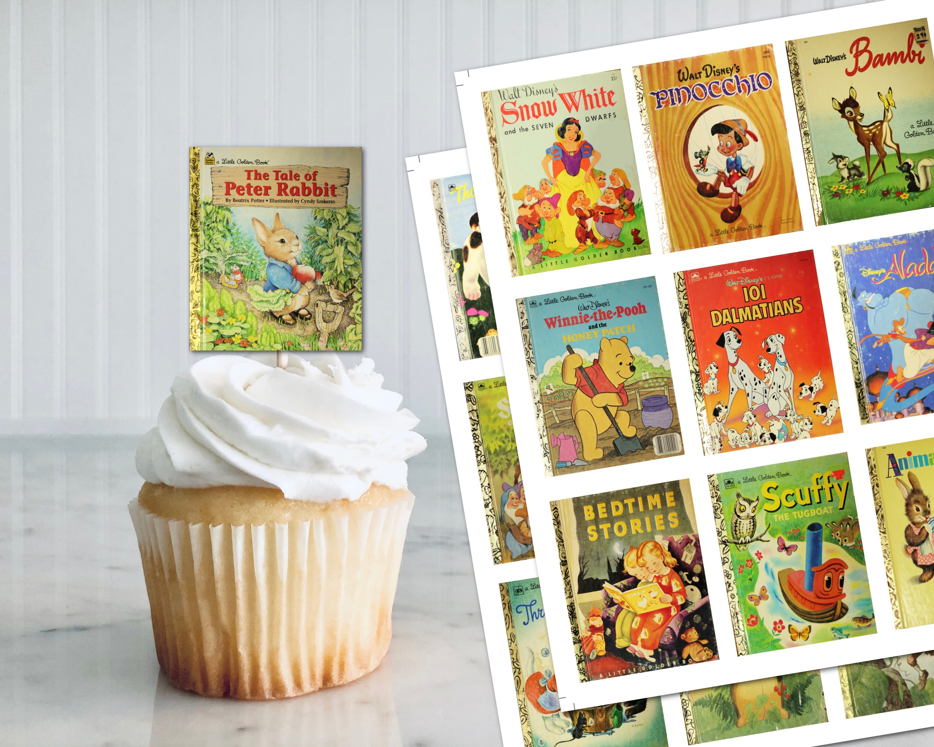 This set includes two sheets of "Little Golden Book" cupcake toppers. Nice addition to our baby shower games and signs listing also available in this shop. I photographed each book myself so expect flaws from the real vintage books that adds to the charm. *PLEASE NOTE* This is a digital download product, and no physical item will be shipped to you. Simply purchase, download and print. You can print at home or at a print shop. Images are 300dpi. For best results print on 8.5x11 semi-gloss cardstock.