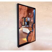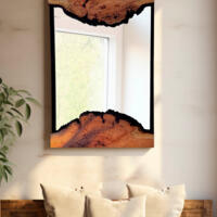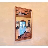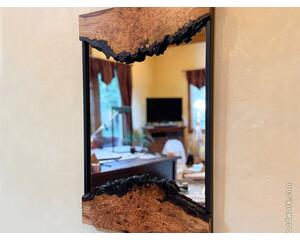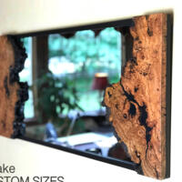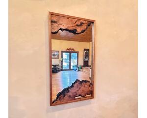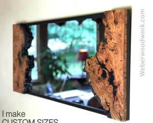 A Unique and Beautiful Live Edge Cherry burl mirror with built in shelf.