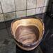 This piece was hand-turned on a wood lathe, sanded, and finished with a multiple-step process of natural oils and waxes, giving it a silky-smooth surface and warm, soft luster.