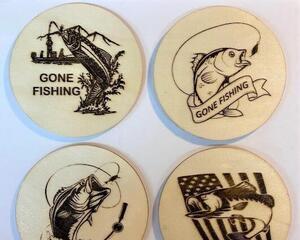 FISHING DESIGN WOOD COASTERS - SET OF 4
