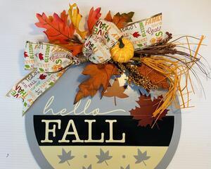 14” Round Hello Fall Welcome Sign, Thanksgiving, Autumn, Door...