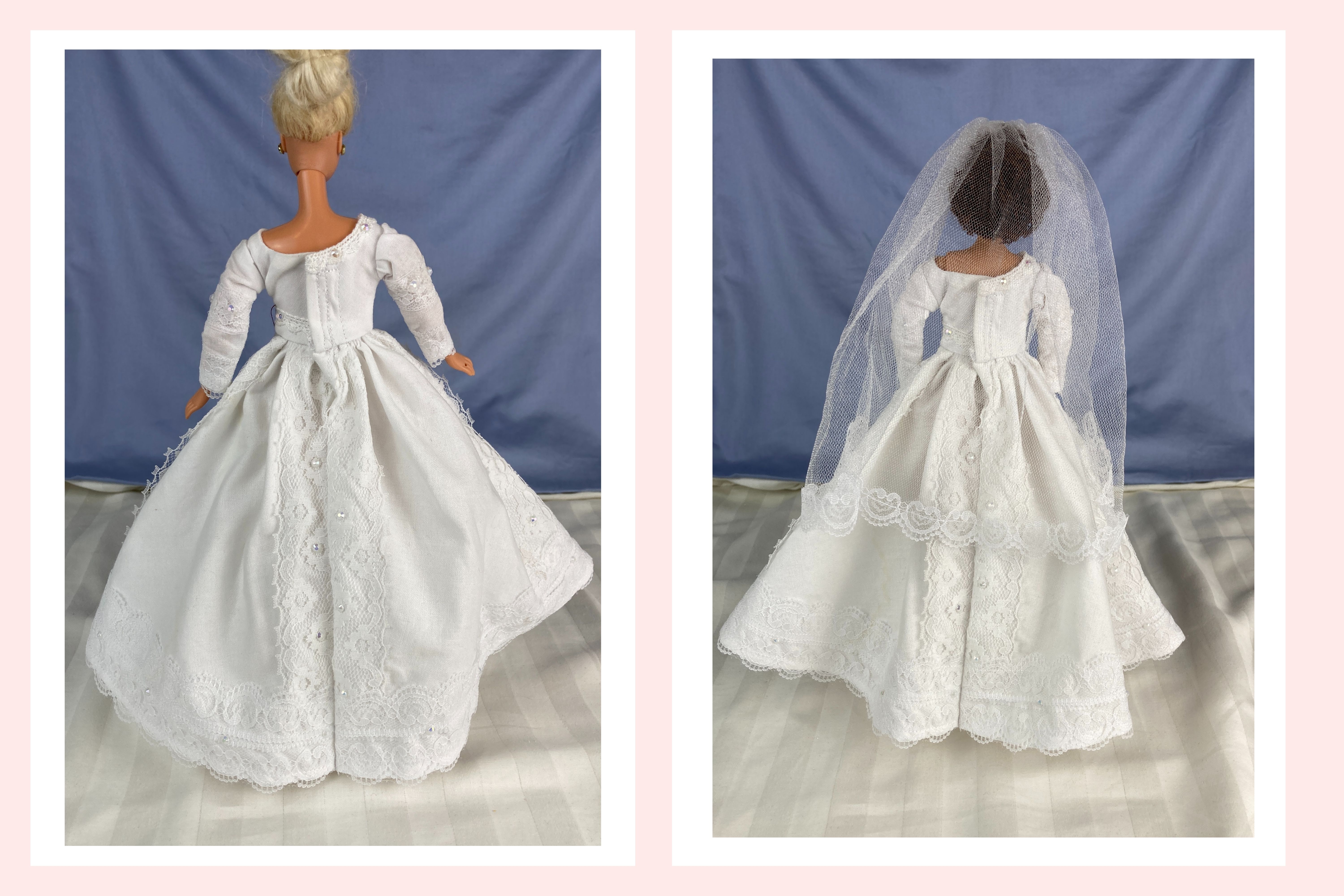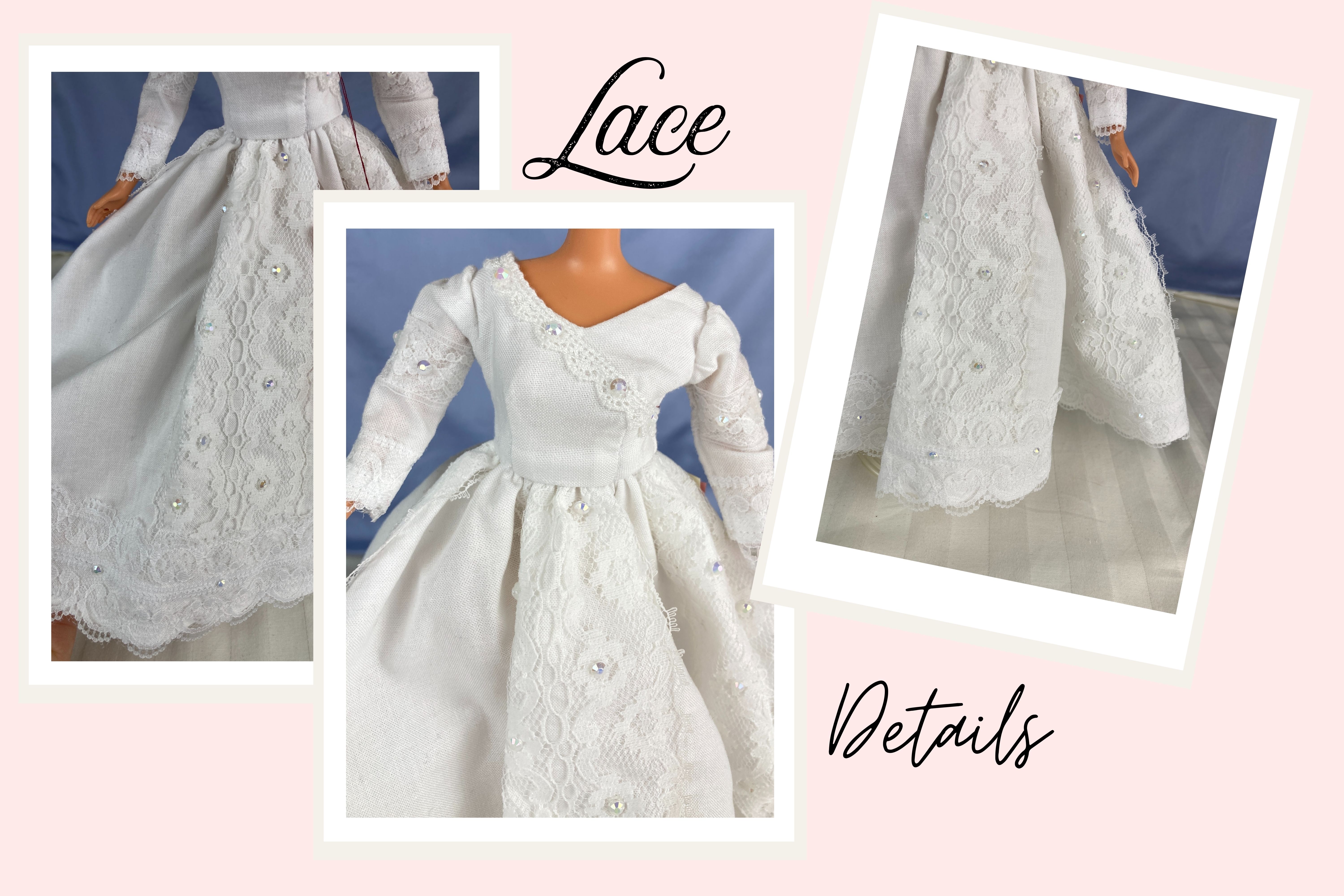 This dress fits 11.5" Fashion Dolls/1:6 scale dolls/play scale dolls (fits best on a doll that is either articulated or can raise its arms to the sides and ones with standard or narrow hips; some dresses may fit wider hipped dolls depending on style; please contact if not sure) and are created to hold up to much use. All our doll dresses are made, not only with style and beauty in mind, but durability as well. The bodices are lined, and all seams are finished with multiple zig-zag stitching.