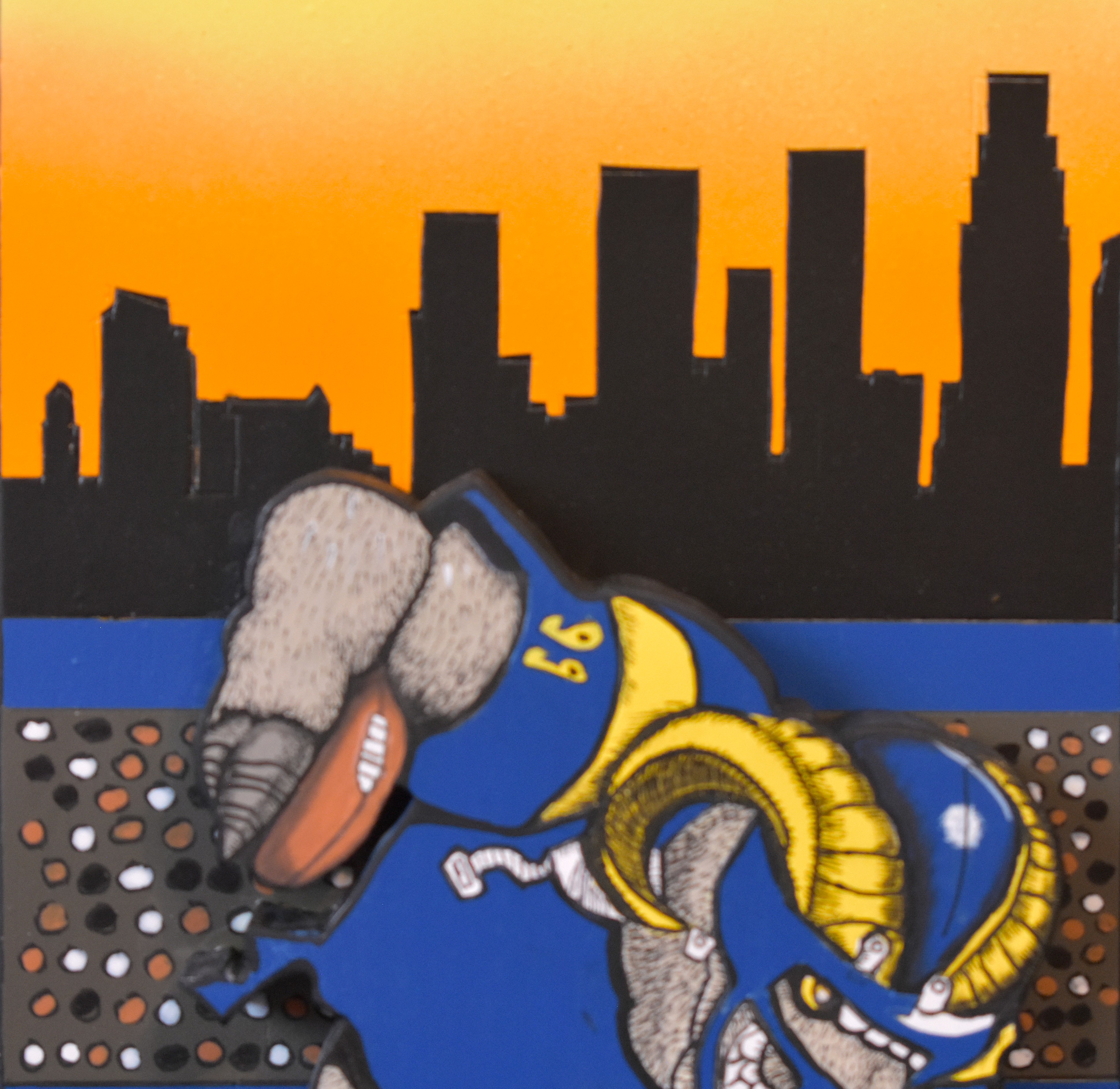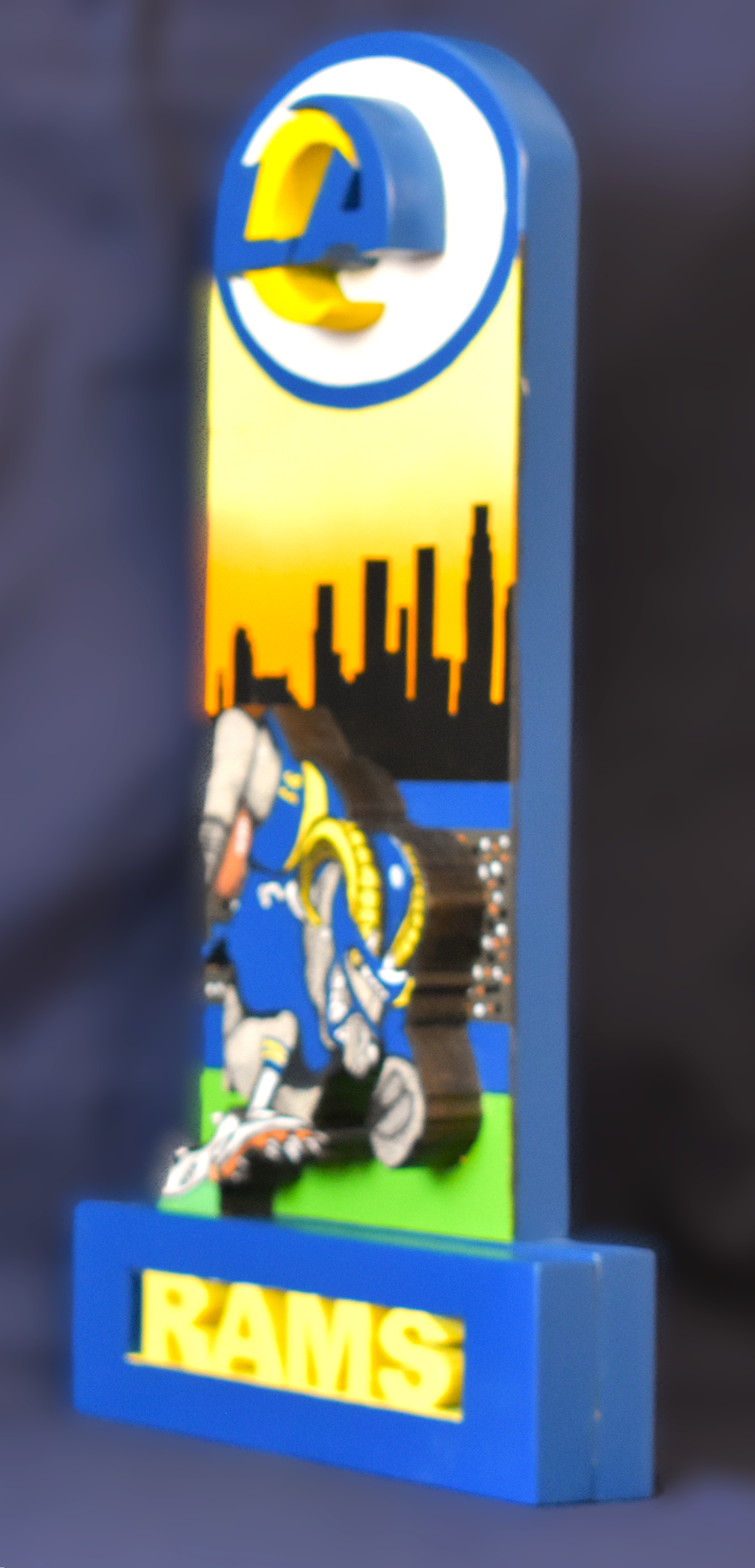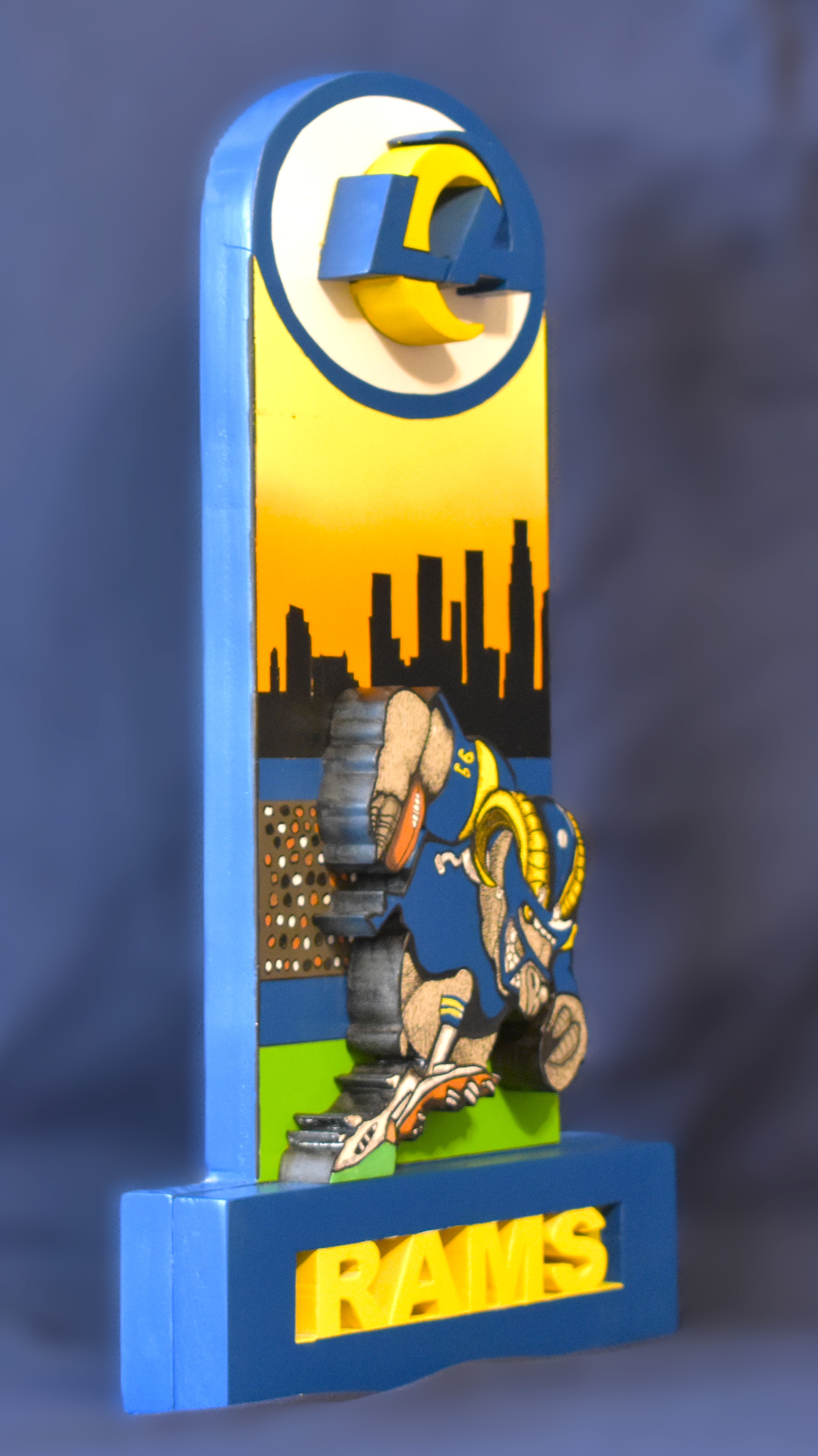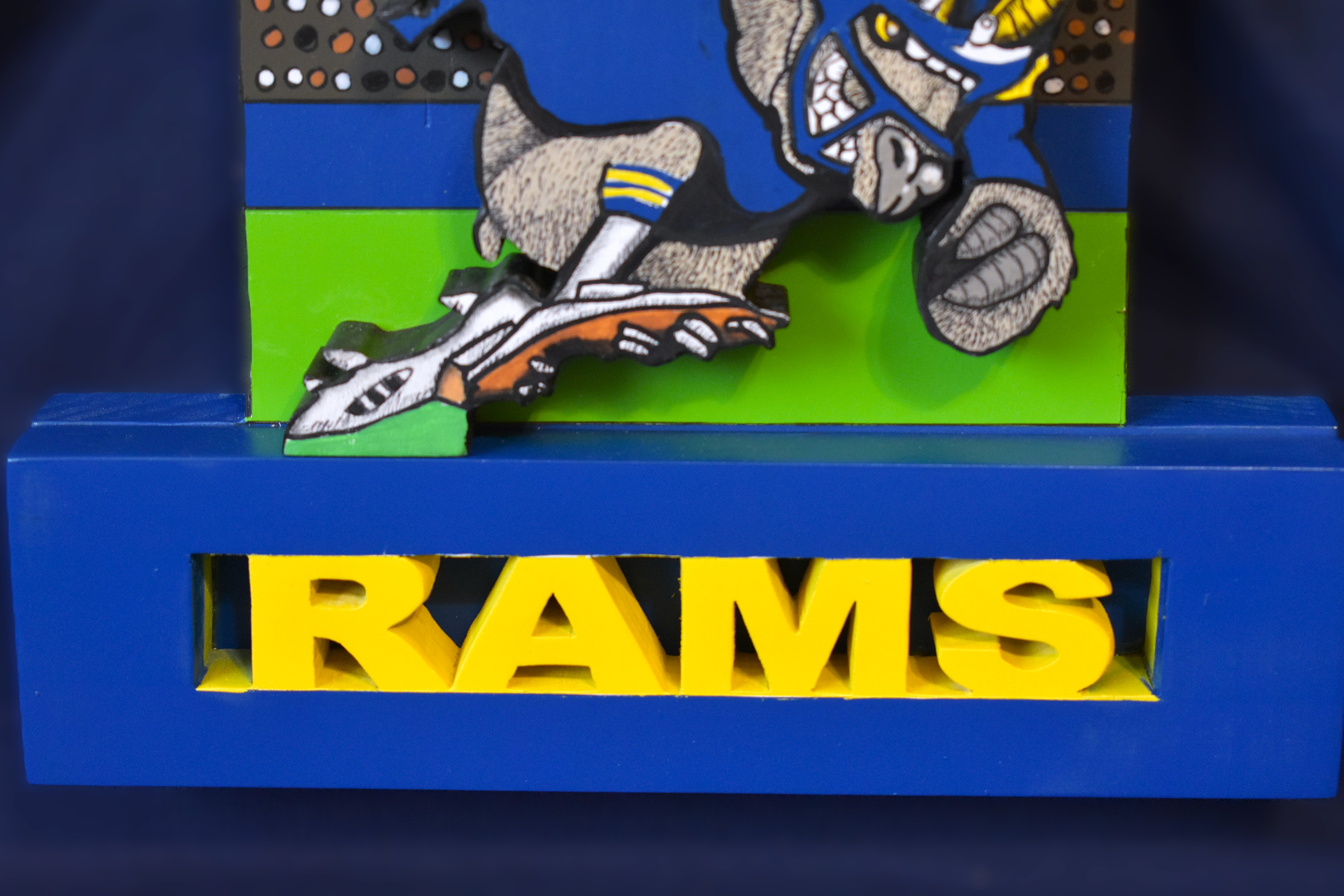 Elevate your home or office décor with our stunning Los Angeles Rams 3D Wooden Diorama. Measuring 9 ¼ inches in Length and 15 inches in height, this handcrafted piece is made from high-quality poplar board wood, ensuring durability and a premium finish. Featuring a charming cartoon-style Ram sprinting across the field, with the iconic city Skyline Silhouette in the background. this hand-painted Diorama captures the spirit of the game and makes a perfect gift for any Rams fan. Hang it proudly to showcase your team loyalty and add a touch of whimsy to your space. The exclusive design features a convenient sawtooth hanger on the back, allowing for effortless Wall mounting and display. This one-of-a-kind Diorama is not mass-produced, making it a distinctive addition to your space. For a detailed view of its intricate features, please enlarge the accompanying photos.