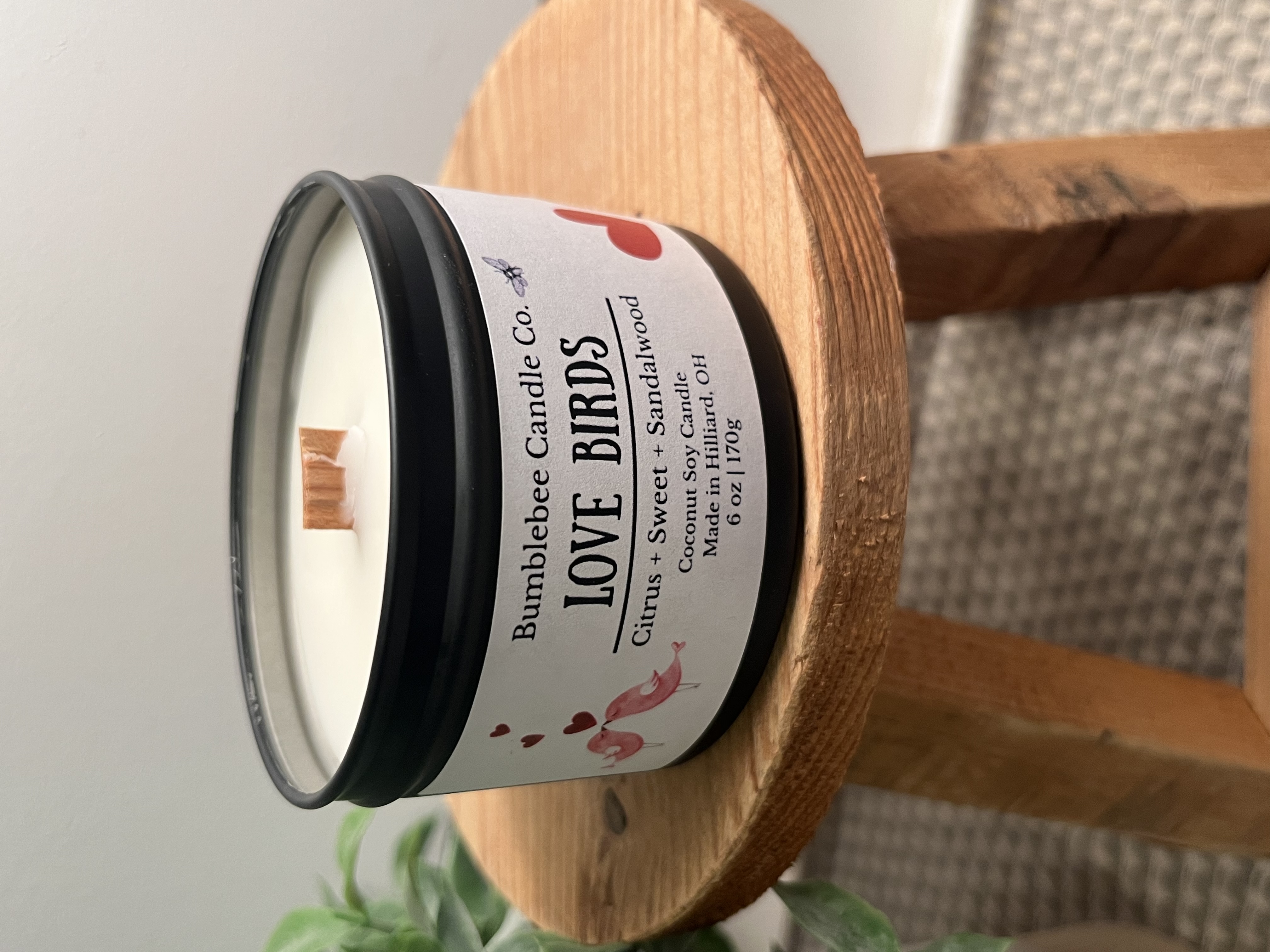 Matte Black Tins hold a 6 oz candle, coconut soy wax with fragrance oil and crackling wood wick. Each Tin has a round cork and warning label on the bottom protect all surfaces.