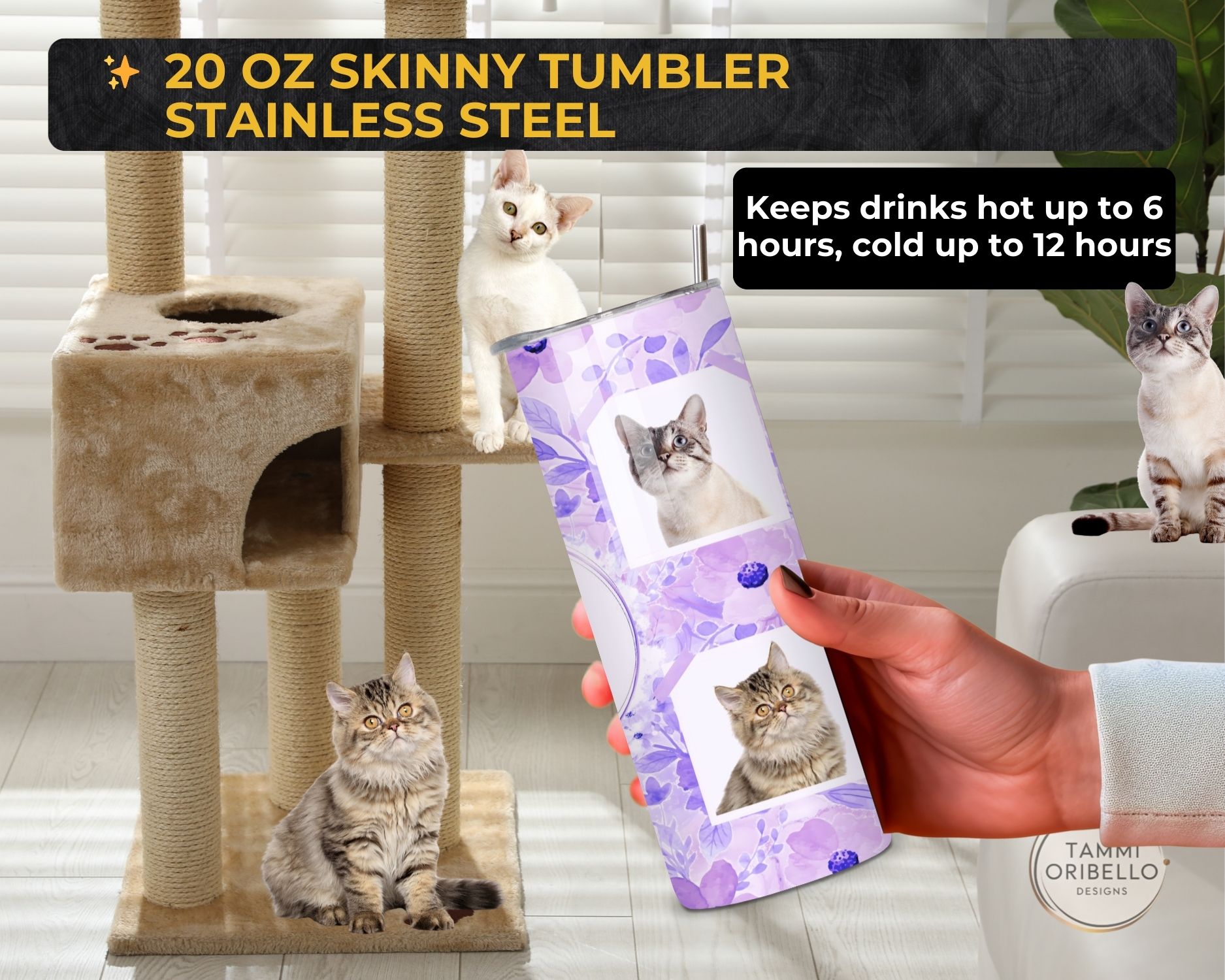 This customized cat photo tumbler is for pet lovers who want a meaningful, personal item they can use every day. It makes a thoughtful gift for cat moms, cat dads, or anyone who treasures their fur family.