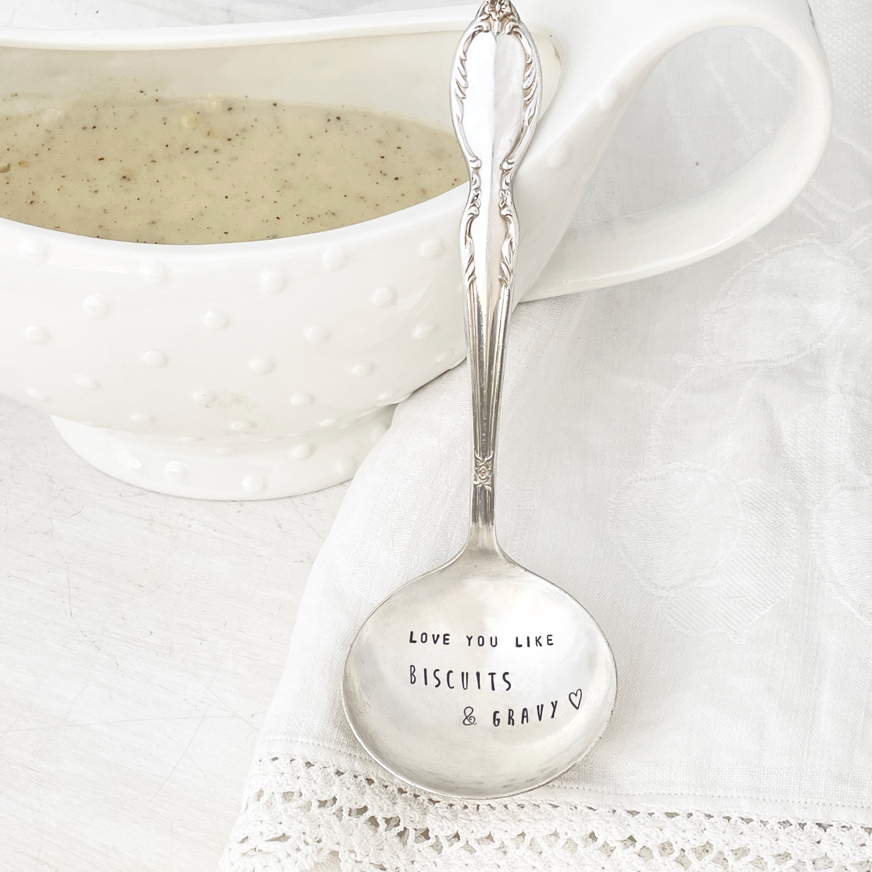 Sunday dinners, comfort food and family. The perfect serving piece for dinners with those that you love “like biscuits and gravy”.