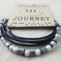 By strategically implementing different shaped beads, this bracelet spells out the word "LOVED" in Morse Code.