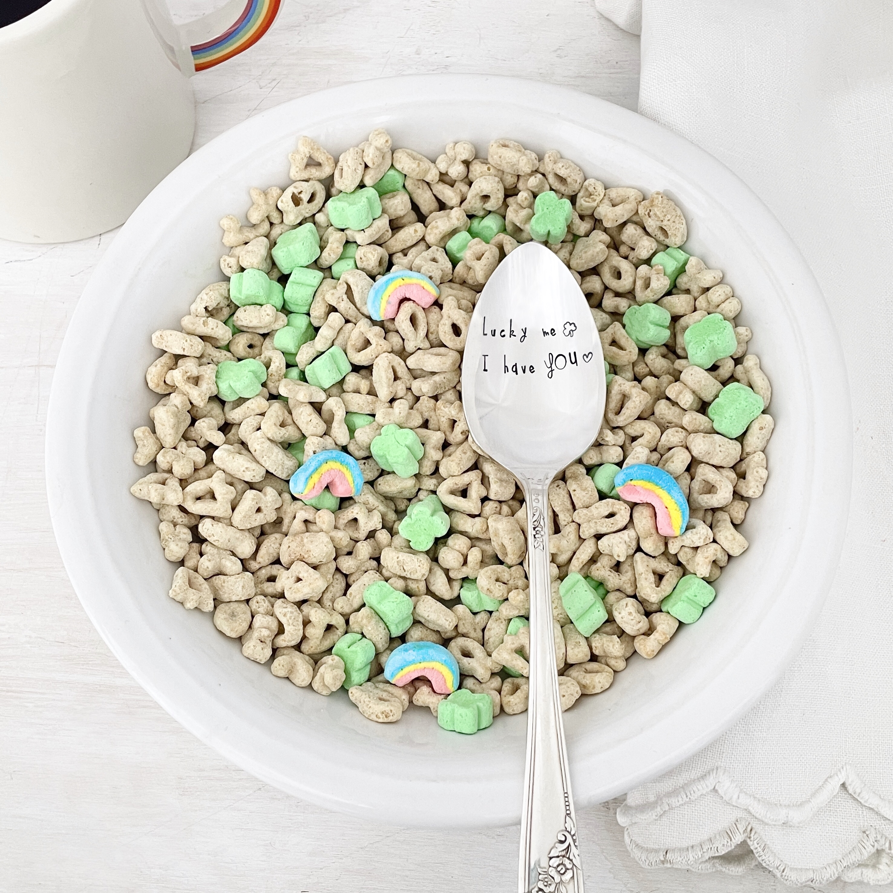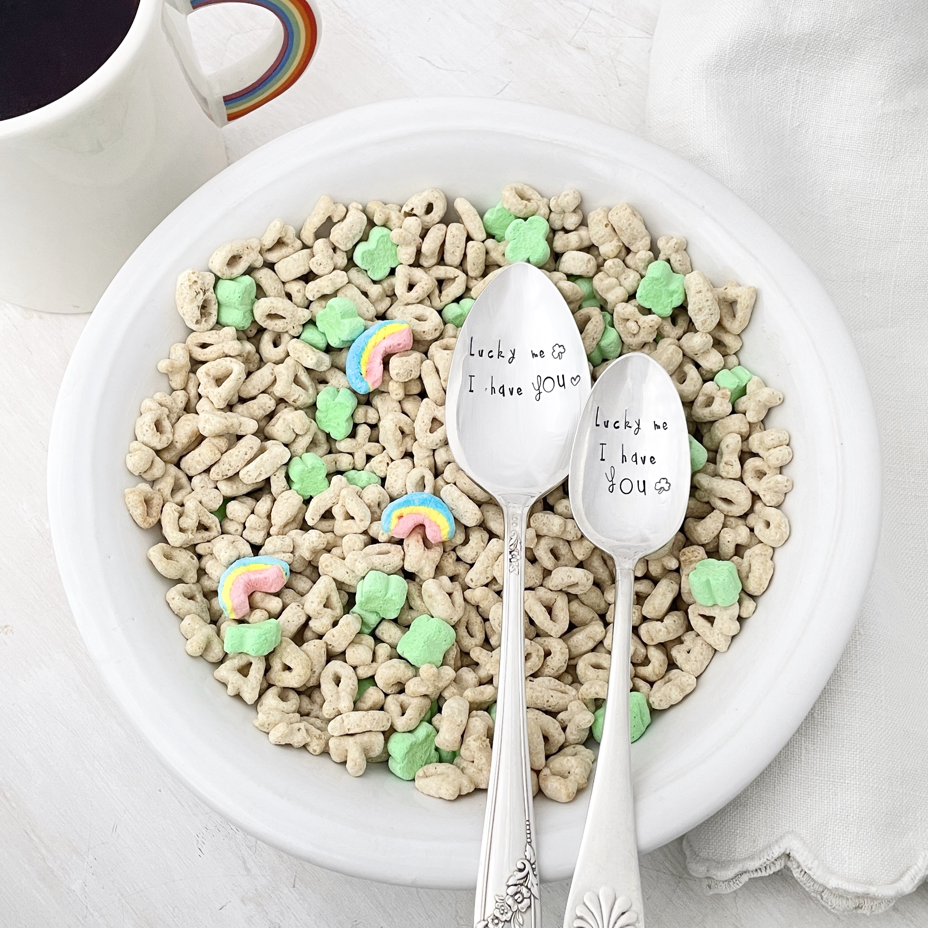 The real luck in life is finding someone to share your favorite moments with - and maybe if you really love them, even your favorite breakfast cereal :) These are stamped on your choice of either a teaspoon for your morning coffee dates or a tablespoon - a little larger and perfect for those big spoonfuls of cereal.