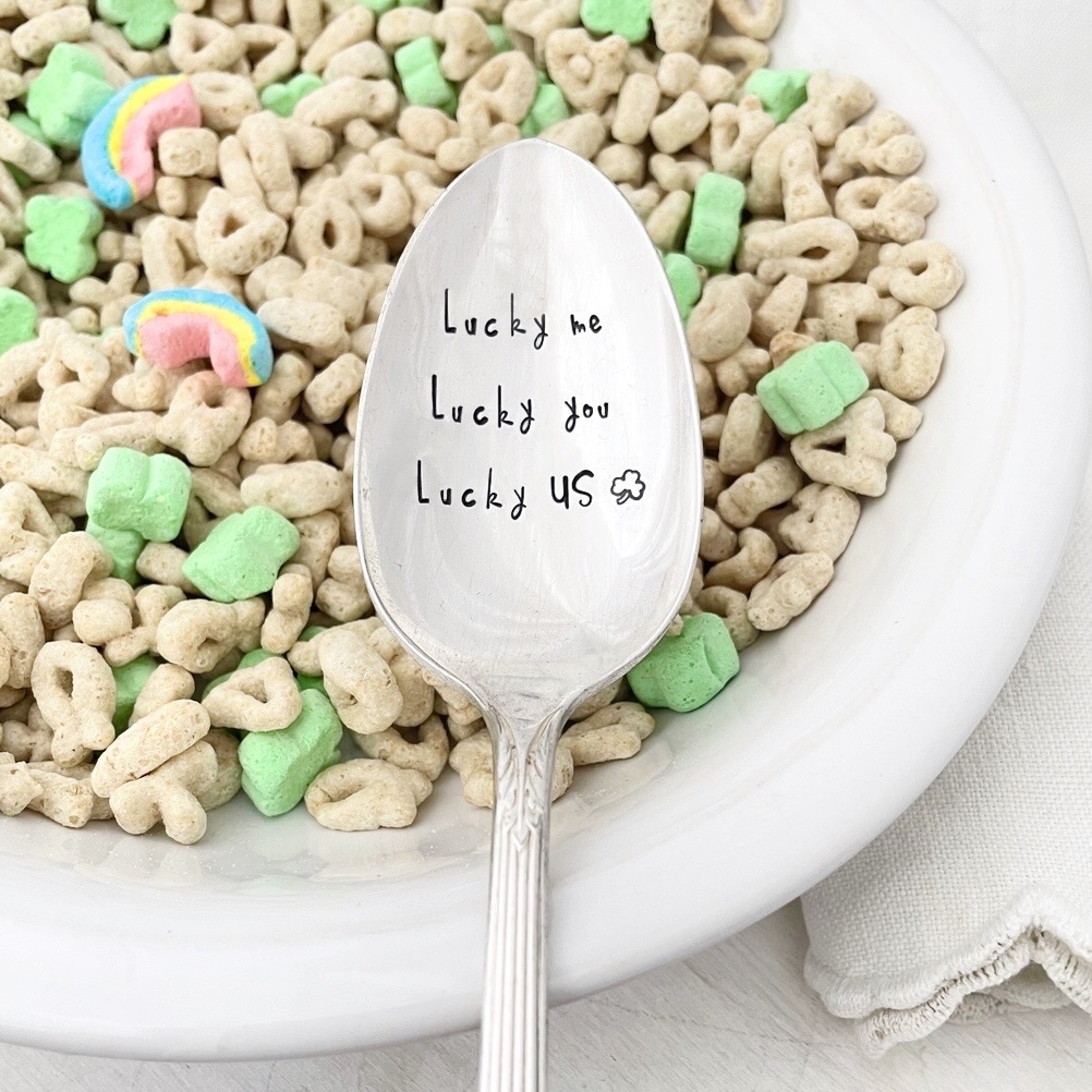 The real luck in life is finding someone to share your favorite moments with - and maybe if you really love them - even your favorite breakfast cereal :) These are stamped on a tablespoon sized spoon, perfect for big spoonfuls.