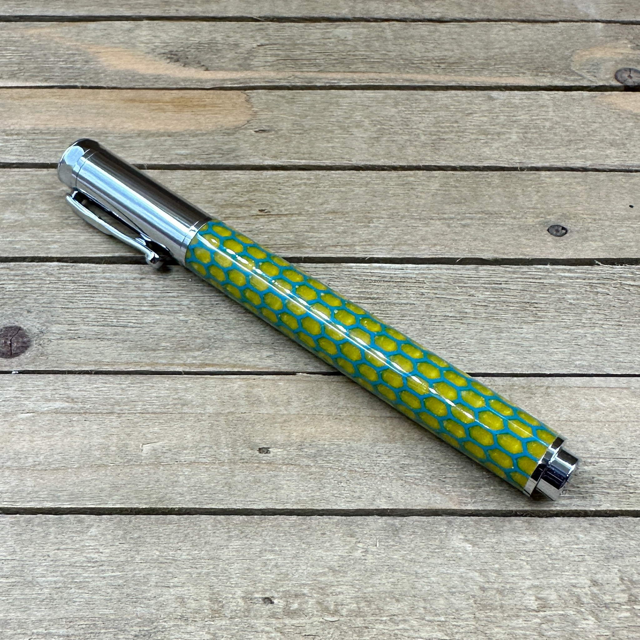Are you looking for a perfect gift that is handcrafted or are you looking for a custom pen for yourself? Then this hand cast and 3D printed honeycomb "Zen" style rollerball pen is just for you. It is perfect for using it daily at the office or just showing off to your friends and coworkers. This beautiful pen is also a great conversation starter or can be used as a way to say thank you, happy birthday, happy anniversary, happy retirement, happy boss' day or a just because gift.