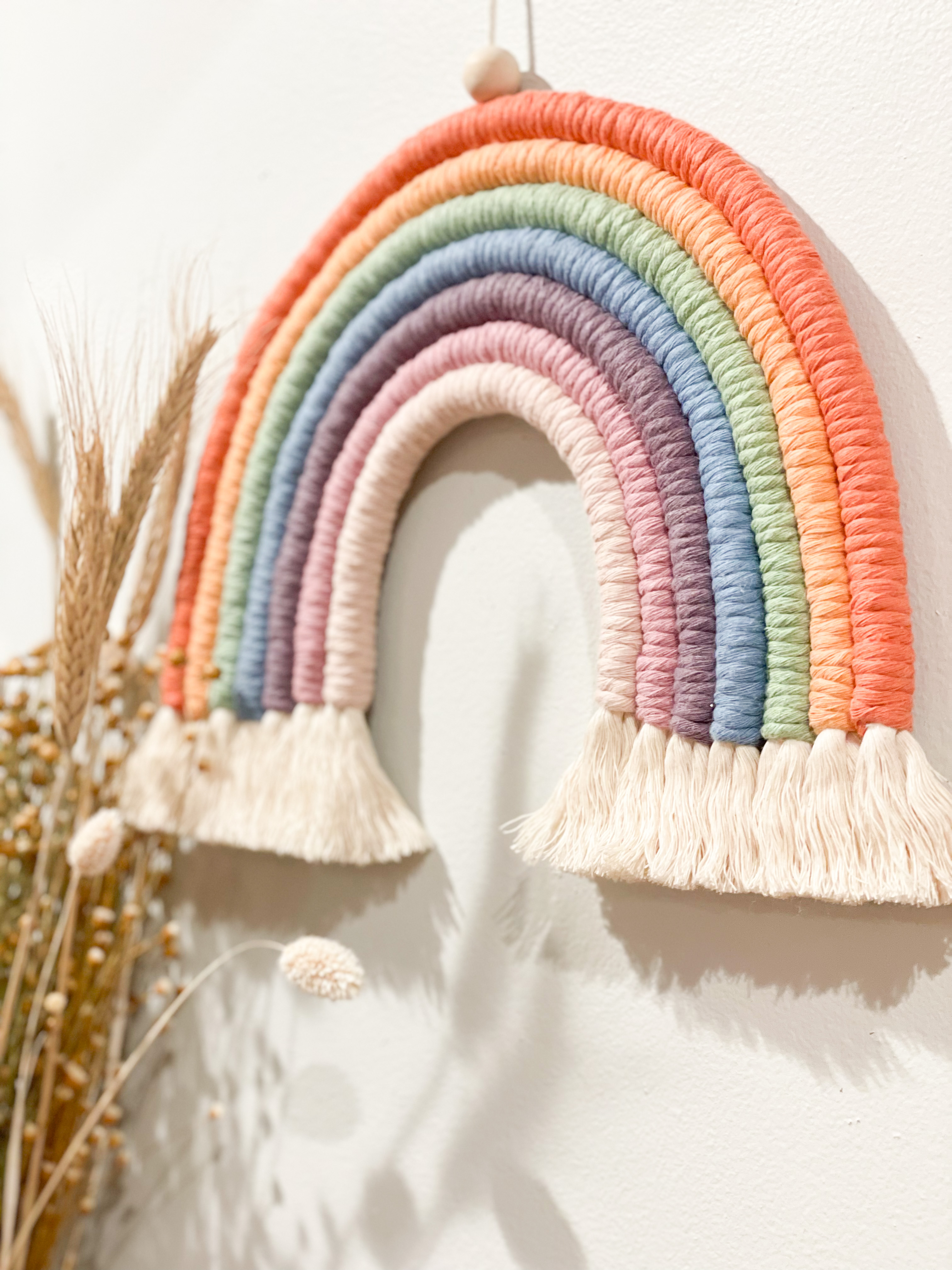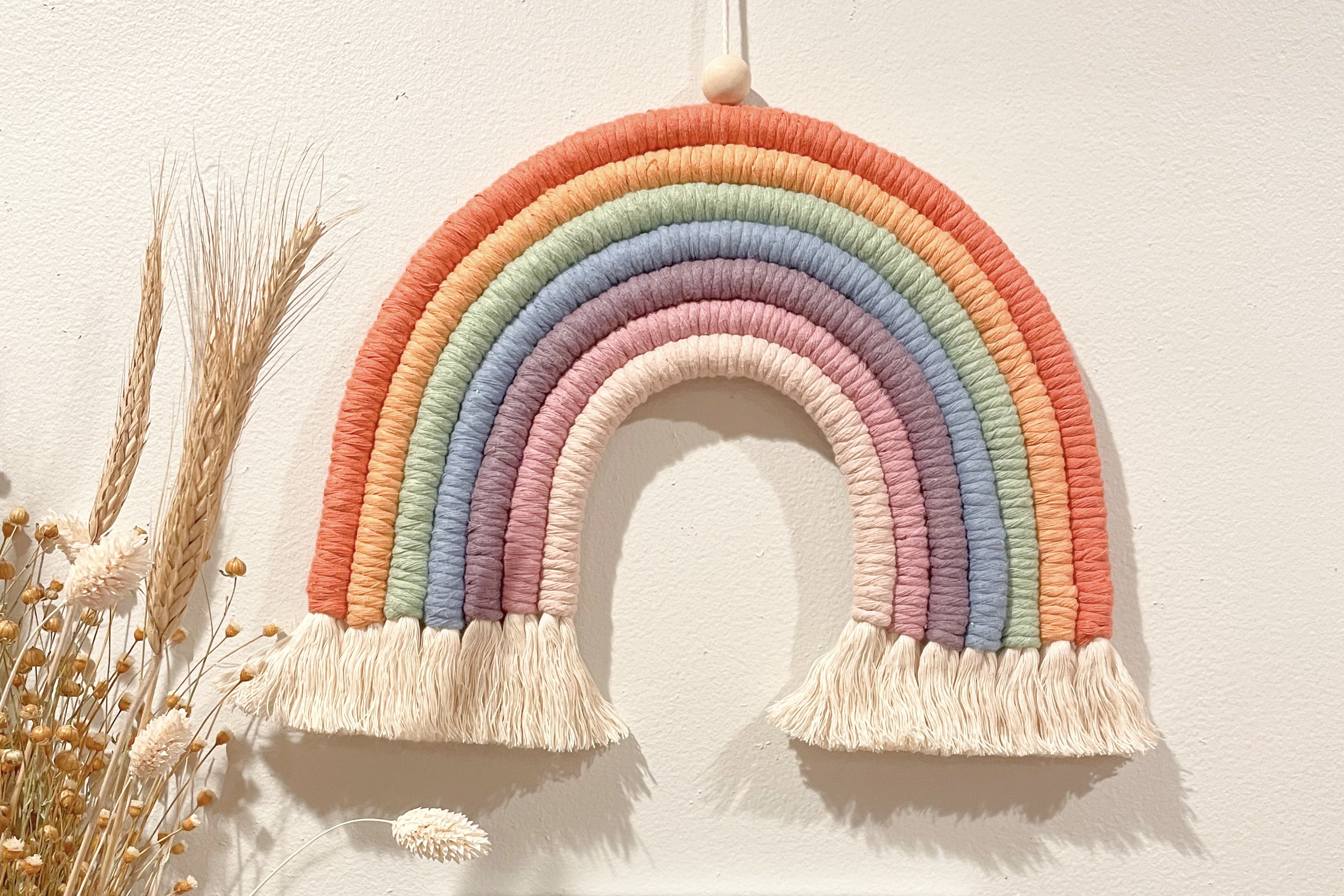 Elevate your space with an exquisite handmade macrame rainbow. These rainbows are meticulously hand raveled and sewn together using 100% natural cord. The cotton fibers are eco-friendly and sustainable, making them a responsible choice of decor.