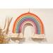 Measuring approximately 13 inches in width and 9 inches in height, this macrame rainbow feature a harmonious blend of colors. Hang this macrame rainbow on your wall, above your bed, in a playroom, or in a nursery to infuse a sense of whimsy and charm. They also make for a delightful gift to new arrivals or as a thoughtful gift for loved ones.