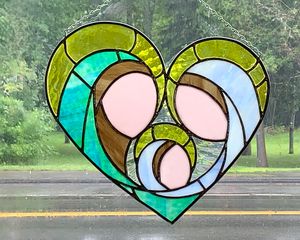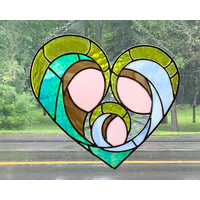 Inspired by the nativity and the divine mystery of the incarnation of Jesus Christ, this stylized stained-glass panel of a mother holding an infant, reflects the depth and beauty of motherly love. It is not just a beautiful piece of stained-glass art, but also a valuable prayer aid that will prompt you to ponder the many profound qualities of parental love.