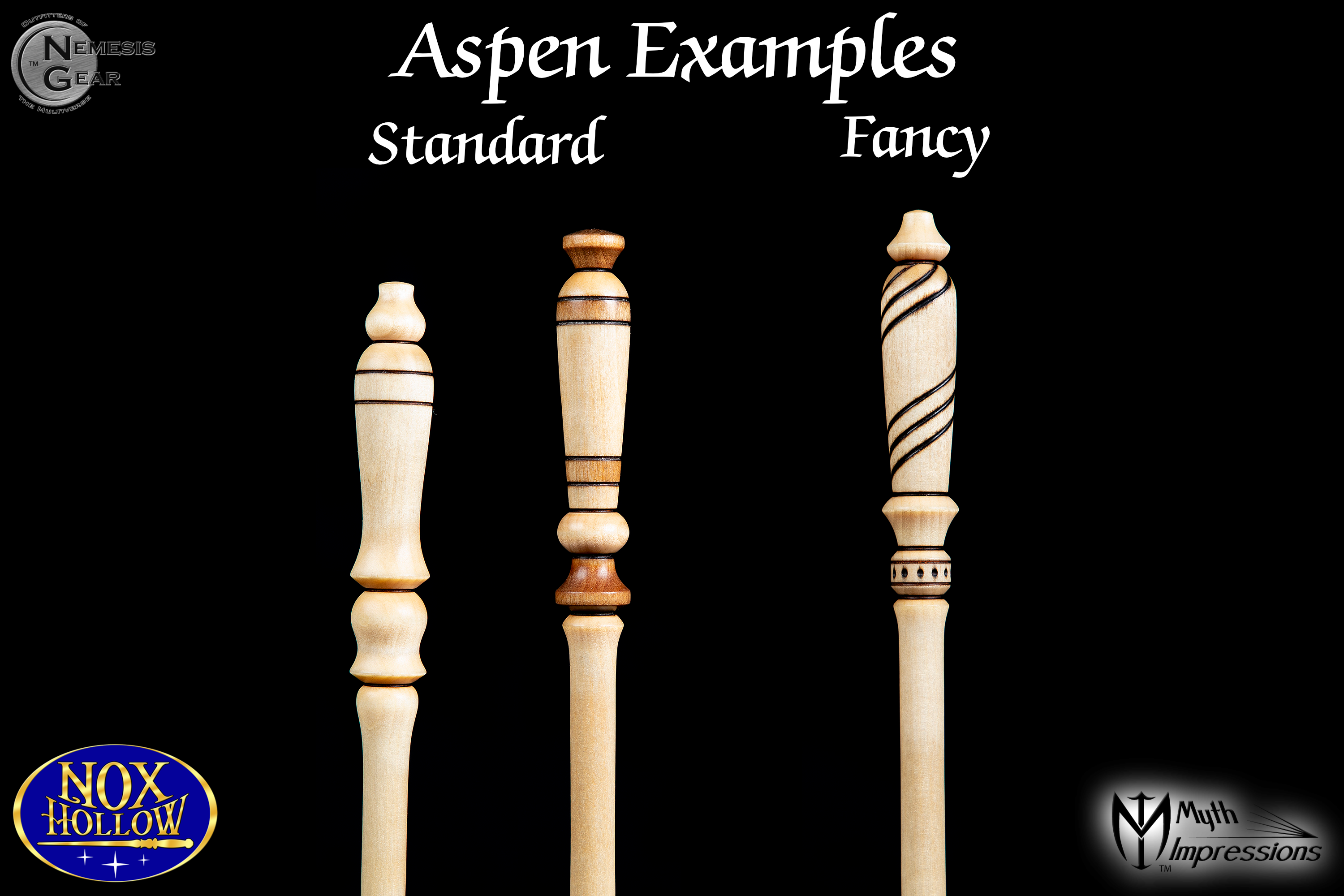 -Standard wands are done mostly on the lathe and hand finished. They have no additional embellishments.