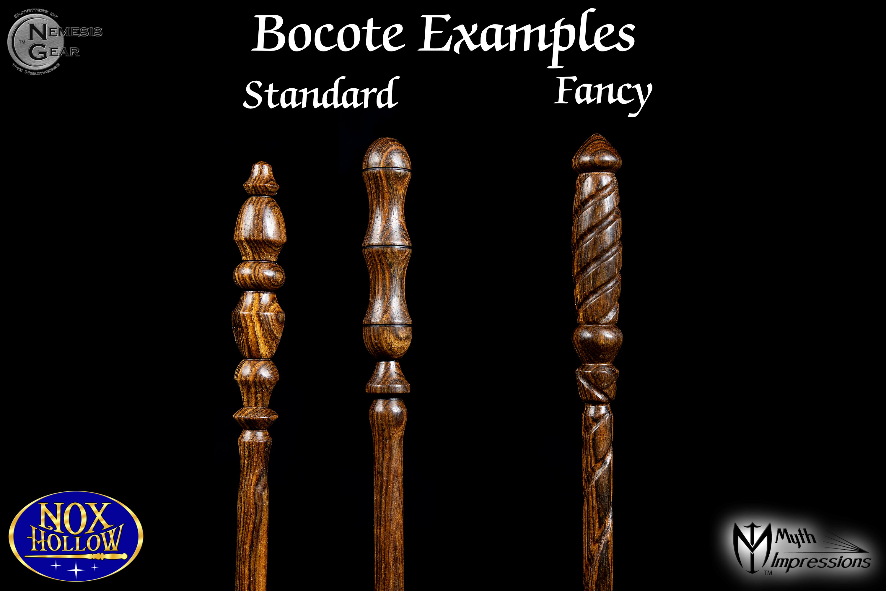 -Fancy wands are shaped on the lathe and then additional details are added by hand. Details may include wood burning, carving, and/or pain inlays; adding significant labor time.