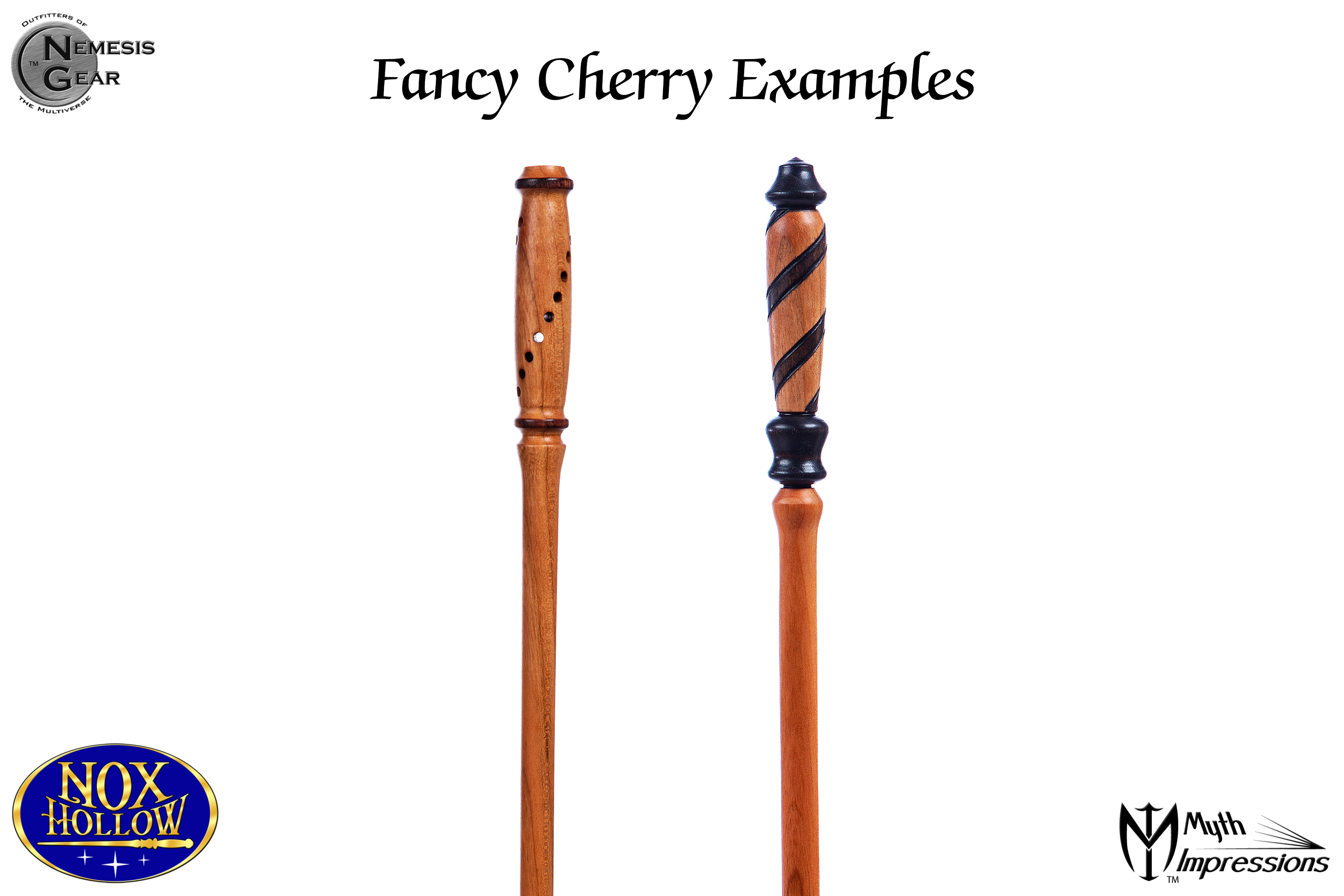 -Fancy wands are shaped on the lathe and then additional details are added by hand. Details may include wood burning, carving, and/or pain inlays; adding significant labor time.