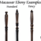 Our wands are individually turned on a lathe and hand finished. Every wand is unique and varies in length form 12" to 15" with a blade no larger than a fine point sharpie marker (about 12mm). We sand the wands up to a 1500 grit, then oil with linseed oil, and polish with wax for a fine finish.