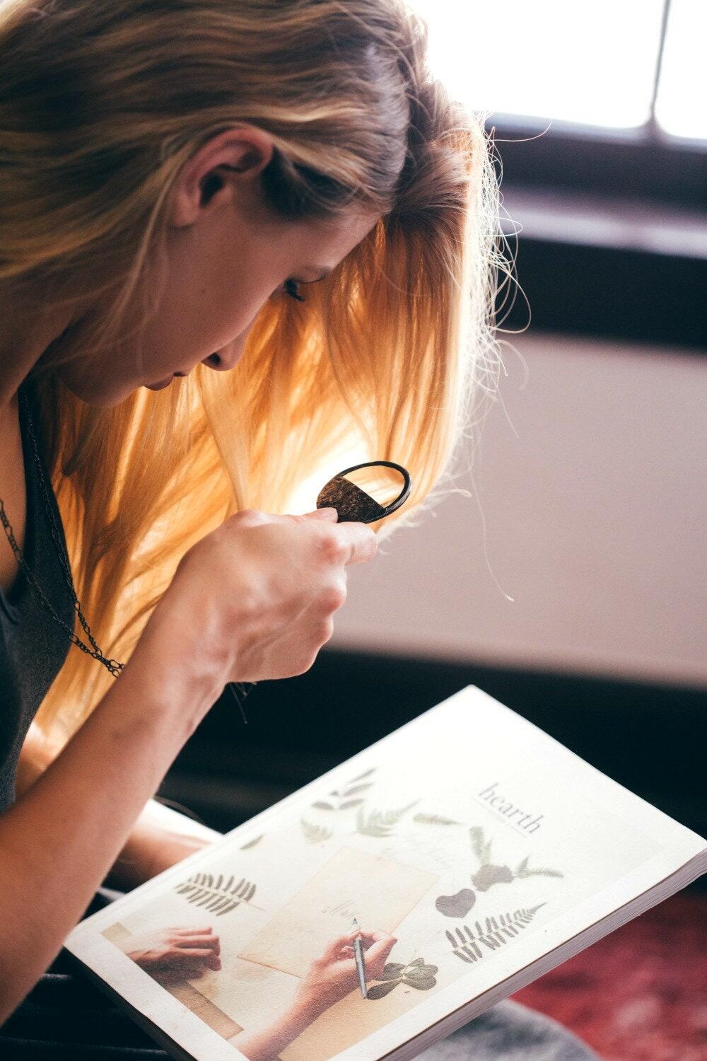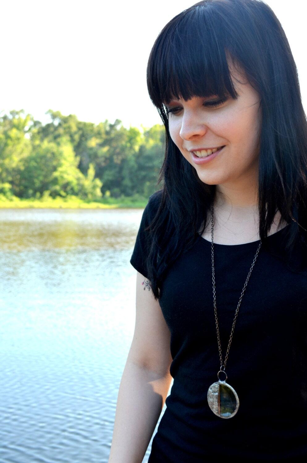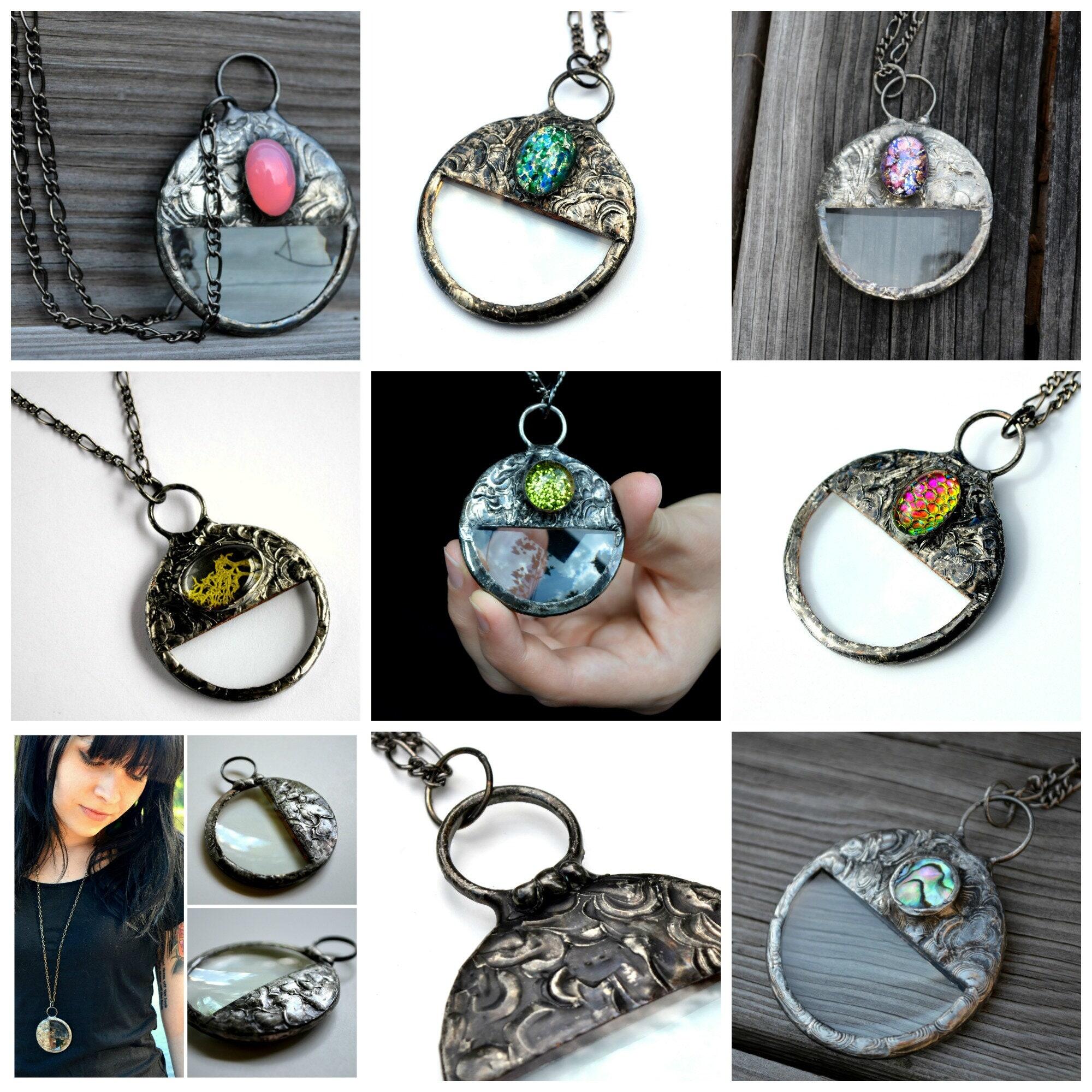 Here I have taken a real magnifying glass and made it a wearable pendant. Long fully adjustable chain in 28" or 36" (71cm or 91cm). This looking glass pendant has many uses other than being a great statement necklace. Can be used for reading the menu when out to dinner, a program at the theater or getting up close and personal with nature when out on a stroll it is useful, attractive and a great conversation piece. *This listing currently qualifies for next business day shipping. *Magnifier Pendant: 2 3/4"H x 2"W (69mm x 50mm) *Expedited shipping available *Gift wrapping offered *Choose Long Chain 28" or 36" (71cm or 91cm) fully adjustable figaro chain The last two images show the various magnifiers I currently sell in my shop. Have a closer look by clicking the following link. https://www.etsy.com/shop/BayouGlassArts?ref=hdr_shop_menu§ion_id=14061498 Gift wrapping is available for a nominal fee. If shipping directly to giftee, I'm happy to include a personal message for you. Select any of these options during checkout. Each piece of jewelry is lovingly handmade by me in my studio on the bayou. If you have any questions, please contact me. Please keep in mind that the photographed item is a representation of what you will receive. As with all handmade, no two are ever exactly alike. PROCESS: I use the Tiffany style method of copper foiling glass, free form hand solder, apply patina and finish with a high gloss hand polish.