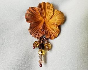 Hibiscus Flower Necklace with Pearl and Citrine Beads