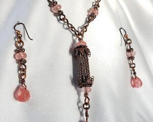 Copper Necklace and Matching Earrings with Rose Quartz Accents