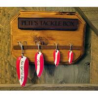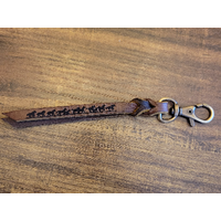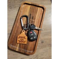 Individually handmade laser engraved wooden cut off's are used and stained to customer's specifications. Leather badge buddy is also laser engraved.