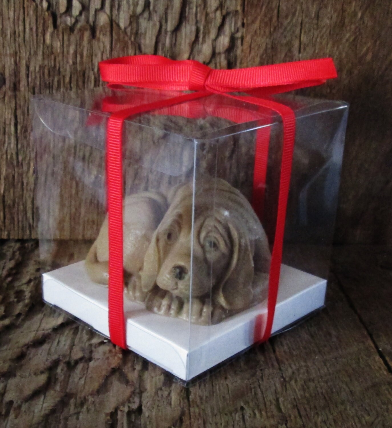 Each detailed dog soap measures approximately 3 inches long, 1¼ inches high, and weighs 4.5 oz, offering a generous size and long-lasting use. Every soap comes beautifully packaged in a clear plastic gift box and finished with a coordinating ribbon, ready for easy gifting. (Gift box style may vary slightly based on availability.)