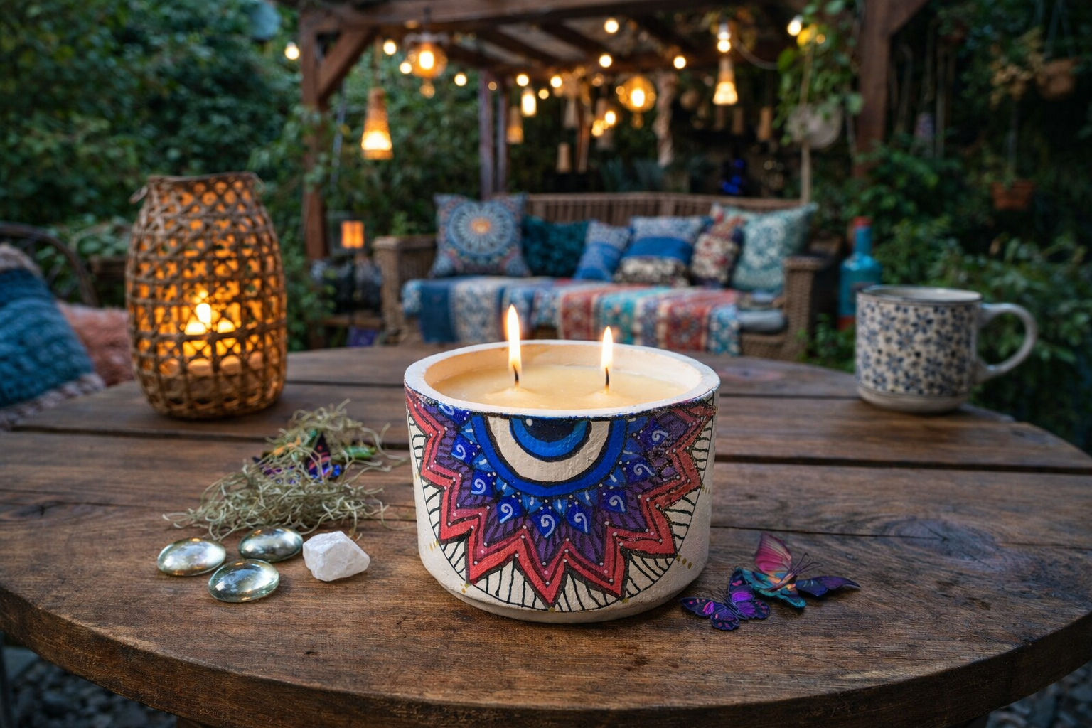 Our collection features hand-painted handbags, candles, hats, planters, and decorative home accents, each adorned with original mandala designs. These creations are more than decorative objects—they are functional pieces of art designed to bring warmth, personality, and soulful expression into everyday life.