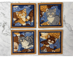 Absorbent Coasters, Kittens on Coasters, Handmade fabric Coas...